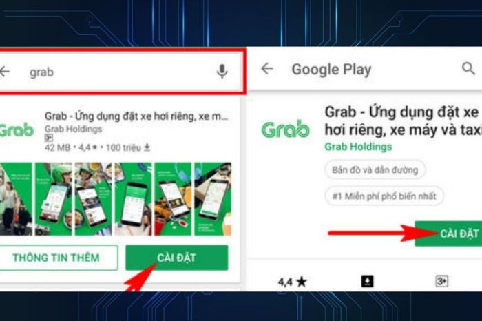 - Bước 1 – tải và cài đặt ứng dụng: Bạn truy cập vào App store (IOS) hoặc Google Play (Android). Tìm từ khóa “Grab” hay “Xanh SM” và tiến hành cài đặt.