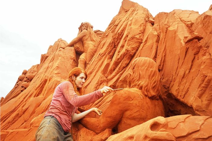 Điểm đặc biệt là các tác phẩm nghệ thuật này làm từ vật liệu hoàn toàn 100% từ cát tự nhiên Phan Thiết. Cát được trộn với nước, ngoài ra không có trộn bất kỳ chất phụ gia nào.