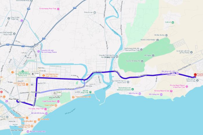 Nếu xuất phát từ trung tâm thành phố Phan Thiết cũ, du khách có thể đi theo lộ trình sau: