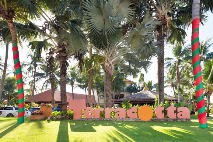 Terracotta Resort Mũi Né đạt tiêu chuẩn 4 sao cao cấp với vị trí nằm ngay cạnh biển Hàm Tiến, cách trung tâm khoảng 10 phút đi xe. Khách sạn cung cấp đầy đủ các dịch vụ như hồ bơi ngoài trời, phòng gym, nhà hàng, quán bar, chỗ để xe ô tô miễn phí.