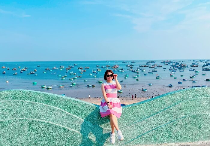 Chụp ảnh với cảnh đẹp làng chài Mũi Né