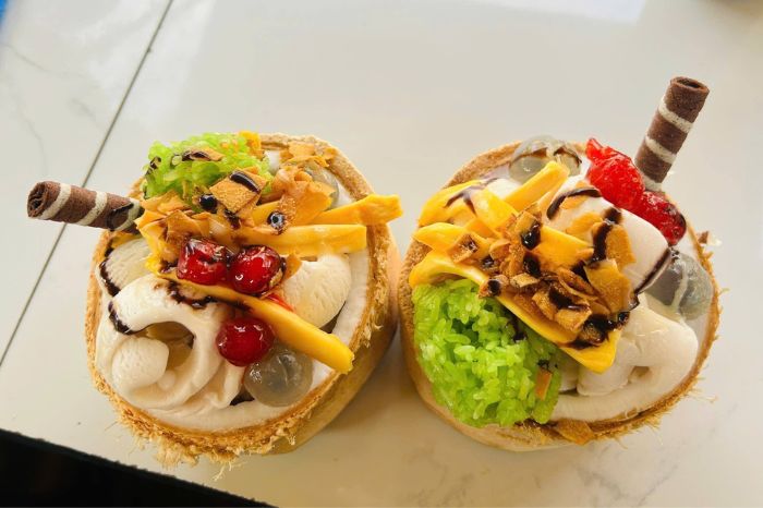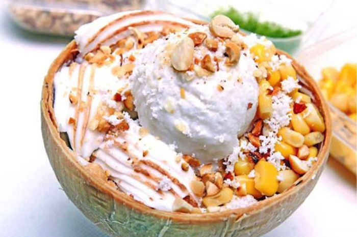 Nơi đây nổi bật với món kem dừa làm từ cốt dừa tươi béo ngậy kết hợp đá bào mát lạnh. Ngoài ra, bạn có thể thử thêm kem bơ hoặc kem sầu riêng cũng rất ngon.