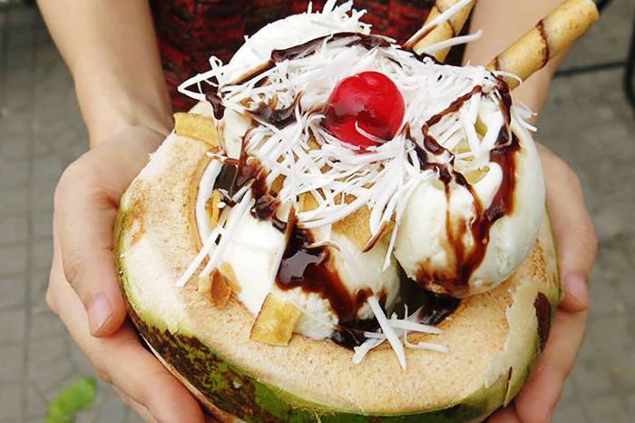 Dạo một vòng thành phố, bạn có thể tìm thấy những quán kem vỉa hè gắn liền với tuổi thơ đến những tiệm kem hiện đại, đủ màu sắc. Bạn có thể thử những vị kèm truyền thống với các mùi hương chủ đạo như kem dừa, kem khoai môn, vani, socola…