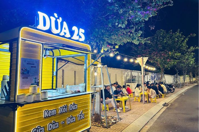Các tín đồ yêu thích ăn vặt không thể bỏ qua quán kem dừa Hạnh. Không gian quán thoáng mát, rộng rãi, thích hợp để ngồi nhóm, hẹn hò.