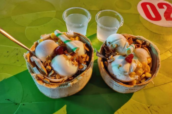 Quán kem cô Lan là địa chỉ thưởng thức những món kem dừa Phan Thiết thơm ngon. Những ly kem của quán thu hút du khách bởi topping đa dạng như xoài, phô mai, dừa bào, dâu…