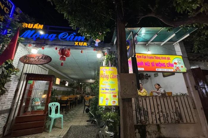 Đây là địa chỉ bán kem flan truyền thống chính gốc, đồng thời cũng là nhà của nữ sĩ Mộng Cầm – nàng thơ của thi sĩ Hàn Mặc Tử. Quán sở không gian rộng rãi, thoáng mát, decor gam màu hoài cổ với nhiều góc check in cực chất.