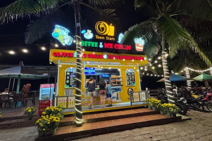 Quán kem & cafe Teen sở hữu view biển thoáng mát, rộng rãi, thích hợp để ngắm khung cảnh hoàng hôn lãng mạn. Đây được xem là điểm hẹn lý tưởng cho các bạn trẻ, cặp đôi…