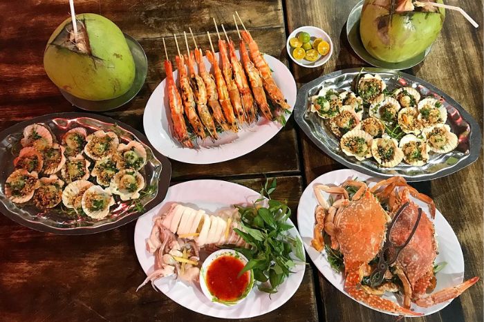 - Khu vực bờ kè: Đây là thánh địa cho những ai yêu thích hải sản tươi sống. Các quán nằm san sát dọc bờ biển, thực khách có thể vừa nhâm nhi vừa nghe tiếng sóng vỗ.