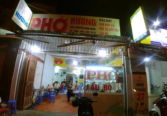 Hương là quán “ruột” của nhiều vị khách, nhất là những ai ghiền hương vị phở Bắc. Quán có nhiều loại phở bò: tái, nạm, gân, pín, bắp hoa, theo kiểu người Bắc. Ngoài ra, menu còn có thêm món lẩu bò cũng rất tuyệt.