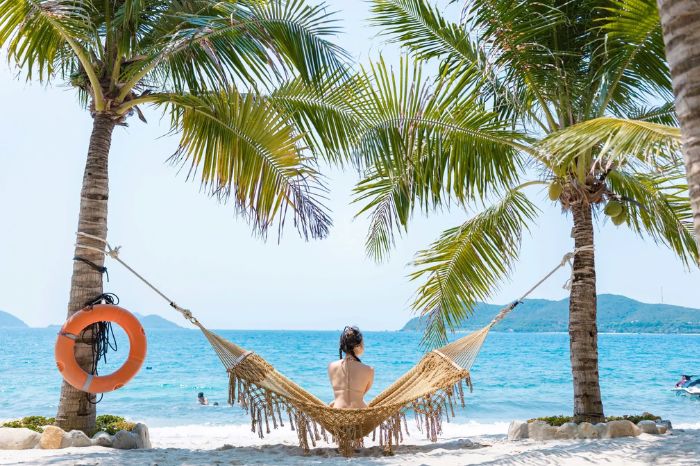 - Tận hưởng sự thư giãn, xua tan mọi lo âu khi nghỉ dưỡng trên những chiếc ghế dài tại bãi biển.